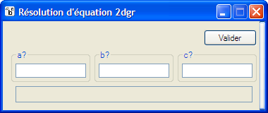 Entrer les valeur a, b et c de l'équation du second degré