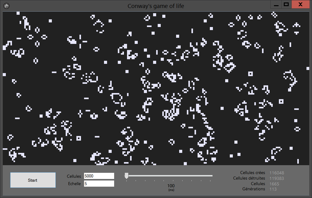 Ce petit logiciel permet de simuler le jeu de la vie et de voir l'évolution des cellules. Il est possible de régler l'échelle ainsi que de faire apparaître des "vaisseaux" avec un simple clic sur la grille.