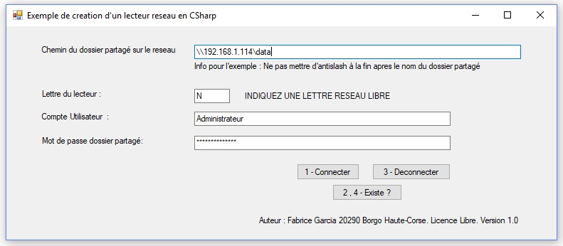 La classe est fournis avec un exemple qui vous permettra de monter, démonter un lecteur réseau sous une interface graphique.